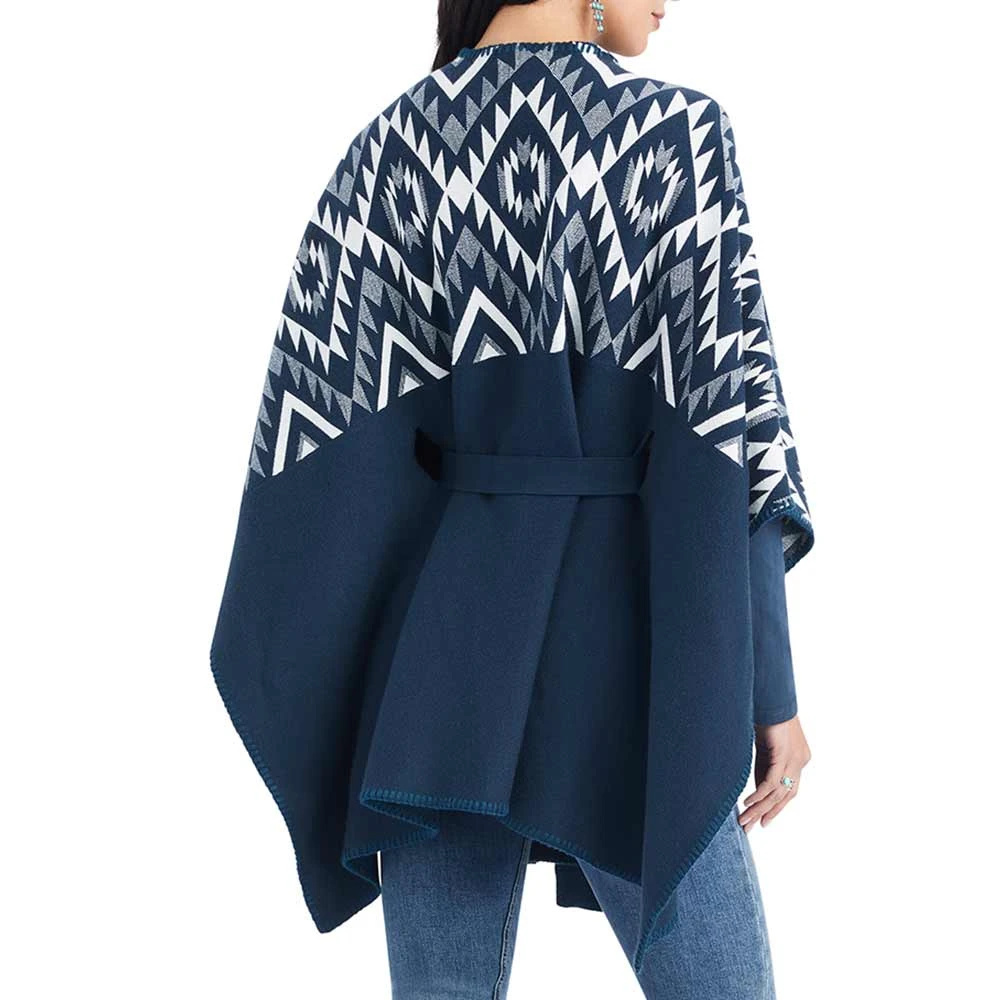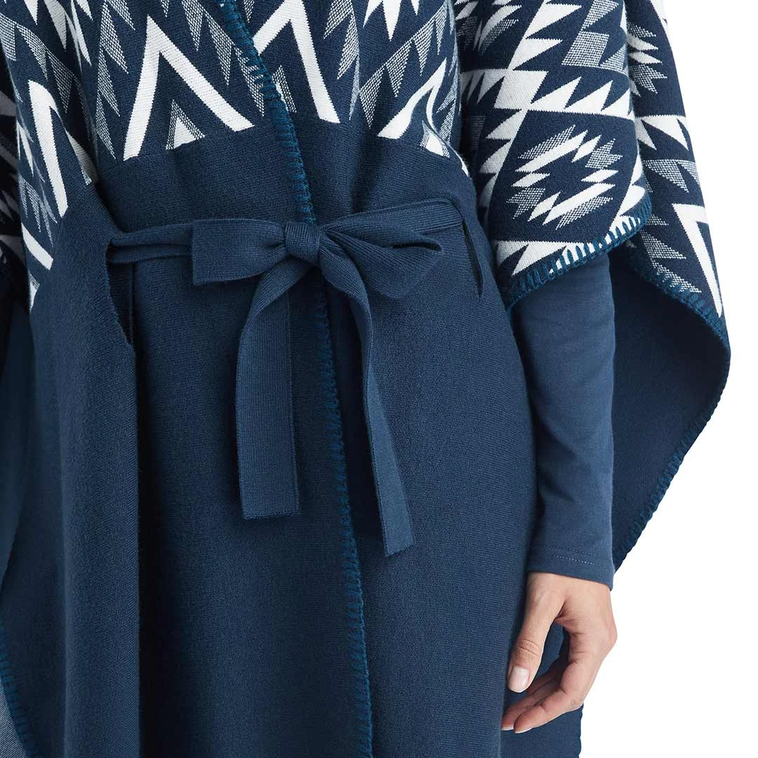 Whatever you have planned, this poncho-style wrap sweater is a great way to add a lot of warmth and a little southwestern style. A removable belt lets you personalize the fit, and add a little more shape when you’re dressing up.