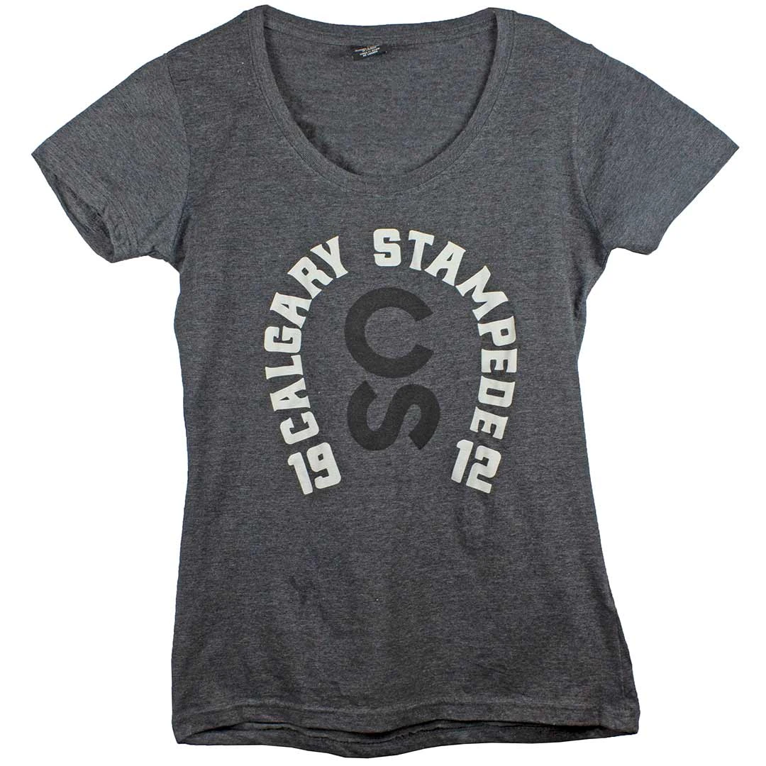 Custom made for the Calgary Stampede, this t-shirt features short sleeves, scoop neck and a Calgary Stampede logo graphic.