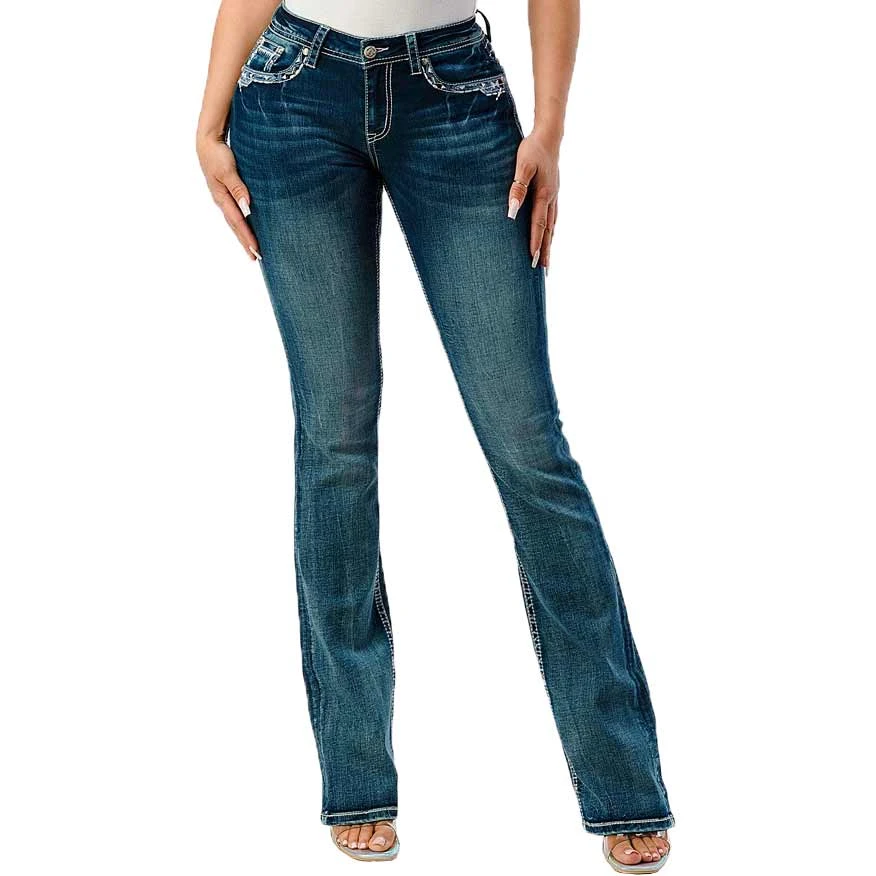 SKU: BGFTB 7237969477680 Category: Bootcut Tags: Color:Blue, Department:Women, EB61735, Jean_fit:Regular Fit, Jean_leg:Bootcut, Jean_rise:Mid Rise, Jeans, Jeans:women, Price_type:Regular, SC_Women's_Jeans_GraceinLA, Style_number:EB61735, Supplier:gra, Wash:Medium Wash
