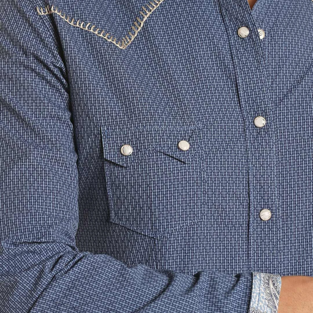 Step out in style in this Rough Stock shirt from Panhandle. The shirt features snap flap pockets, western style yokes, contrast fabric on the inner cuff and pearl snaps.