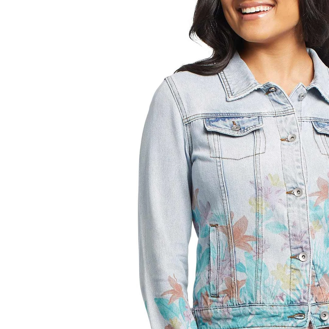 Has there ever been a better invention than the jean jacket? We didn’t think so! This season, we’re loving this updated take on the beloved go-to piece from Tribal that gives us all the classic elements we love—a button front, long sleeves with opening cuffs, faux chest patch pockets, and side pockets, while the modern 22″ length and pretty floral print hem adds the perfect pop of polish to any outfit.